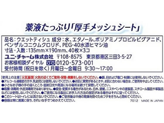ユニ・チャーム シルコット 99.99%除菌ウェット 詰替用40枚×3P 1袋(ご注文単位1袋)【直送品】