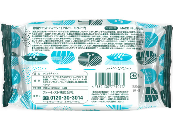 Forestway アルコールウェットティッシュ 34枚入り 5個 1パック(ご注文単位1パック)【直送品】