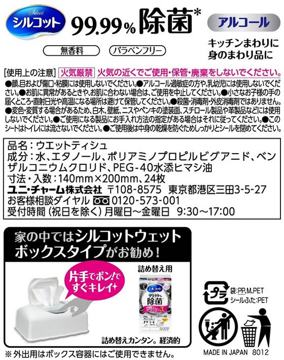 ユニ・チャーム シルコット 99.99%除菌ウェットティッシュ 外出用 24枚 1パック(ご注文単位1パック)【直送品】