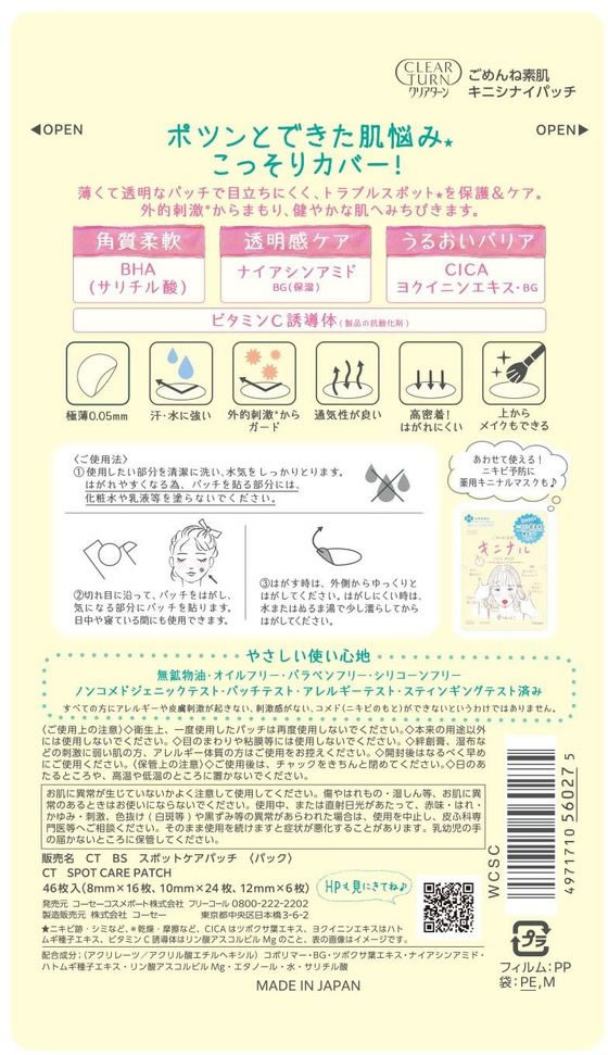 コーセーコスメポート クリアターン ごめんね素肌 キニシナイパッチ 46枚入 1個(ご注文単位1個)【直送品】