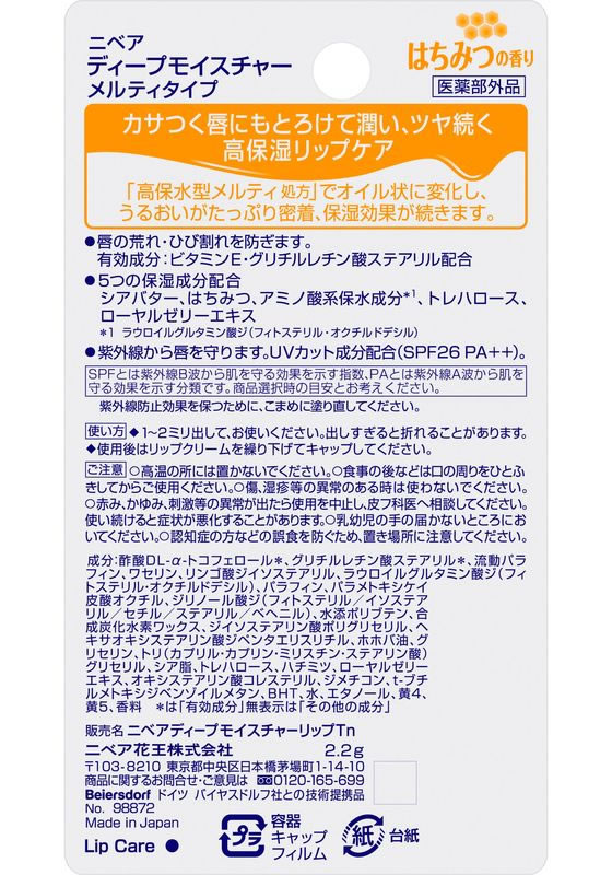 KAO ニベア ディープモイスチャーリップ メルティタイプ はちみつ 2.2g 1本(ご注文単位1本)【直送品】