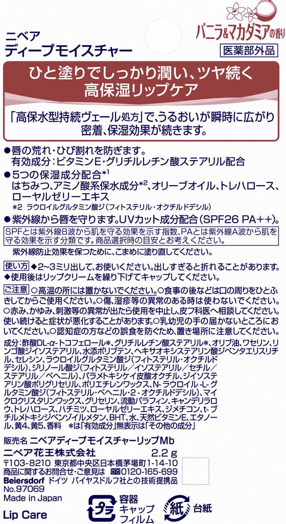 KAO ニベア ディープモイスチャーリップ バニラ&マカダミア 2.2g 1本(ご注文単位1本)【直送品】