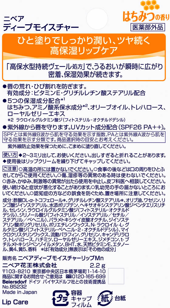 KAO ニベア ディープモイスチャーリップ はちみつの香り 2.2g 1本(ご注文単位1本)【直送品】