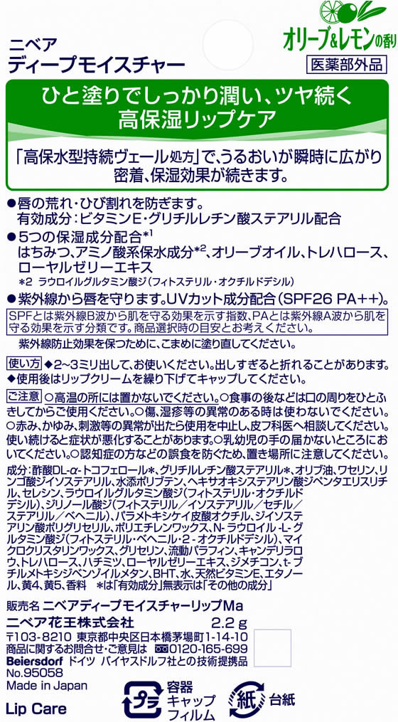 KAO ニベア ディープモイスチャーリップ オリーブ&レモンの香り 2.2g 1本(ご注文単位1本)【直送品】