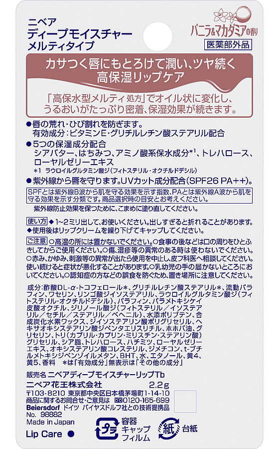 KAO ニベア ディープモイスチャーリップ メルティタイプ バニラマカダミア 2.2g 1本(ご注文単位1本)【直送品】