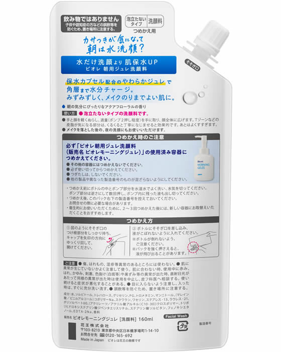 KAO ビオレ 朝用ジュレ洗顔料 つめかえ用 160ml 1個(ご注文単位1個)【直送品】