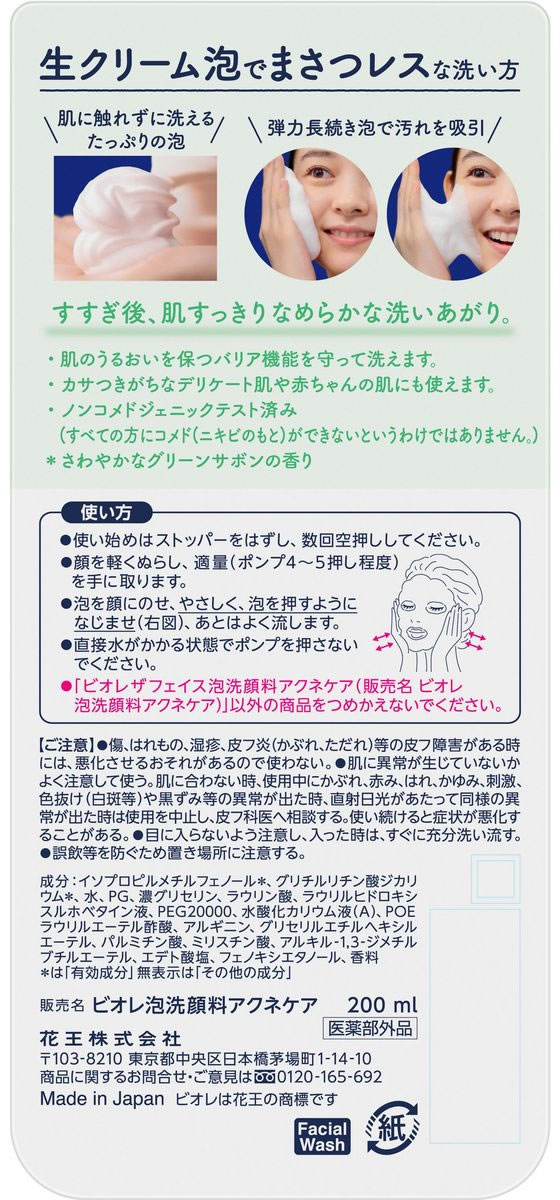 KAO ビオレ ザ・フェイス 泡洗顔料 アクネケア 本体 200ml 1本(ご注文単位1本)【直送品】