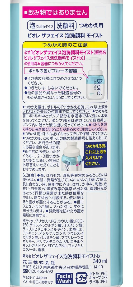 KAO ビオレ ザ・フェイス 泡洗顔料 モイスト つめかえ用 340ml 1本(ご注文単位1本)【直送品】