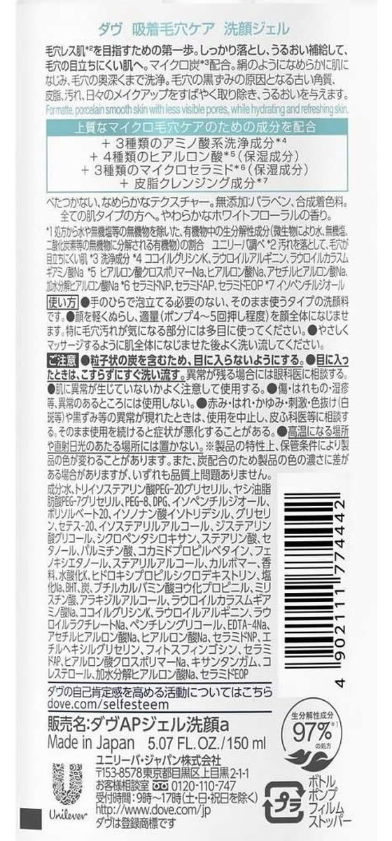 ユニリーバ・ジャパン ダヴ 吸着毛穴ケア 洗顔ジェル 150ml 1個(ご注文単位1個)【直送品】