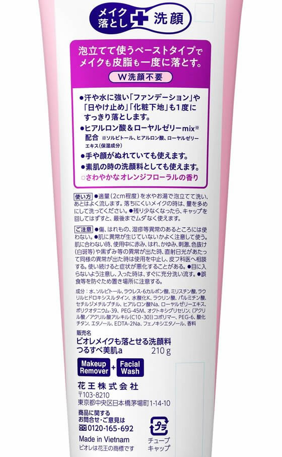 KAO ビオレ メイクも落とせる洗顔料 つるすべ美肌 210g 1本(ご注文単位1本)【直送品】