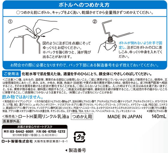 ロート製薬 肌ラボ 極潤 薬用ハリ乳液 つめかえ用140mL 1個(ご注文単位1個)【直送品】