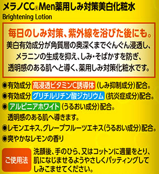ロート製薬 メラノCCMen 薬用しみ対策美白化粧水 170mL 1本(ご注文単位1本)【直送品】