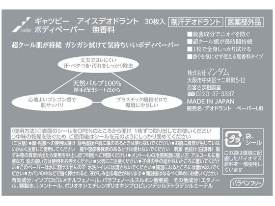 マンダム ギャツビーアイスボディペーパー無香料徳用 30枚 1パック(ご注文単位1パック)【直送品】