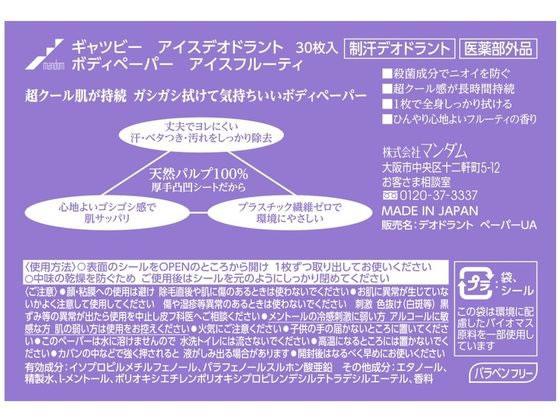 マンダム ギャツビーアイスボディペーパーアイスフルーティー徳用 30枚 1パック(ご注文単位1パック)【直送品】