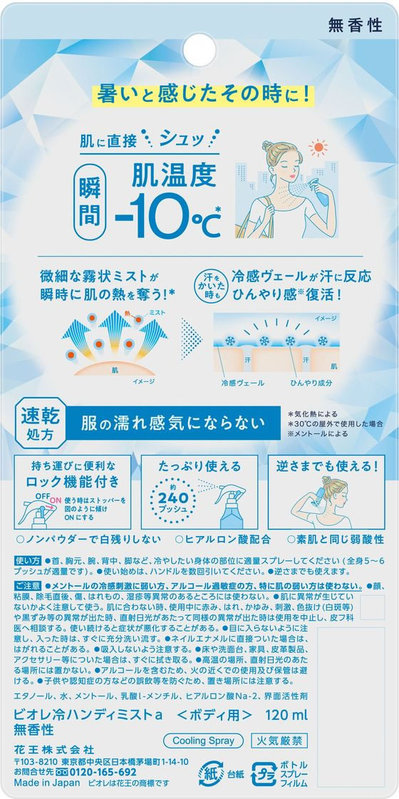 KAO ビオレ 冷ハンディミスト 無香性 120ml 1個(ご注文単位1個)【直送品】