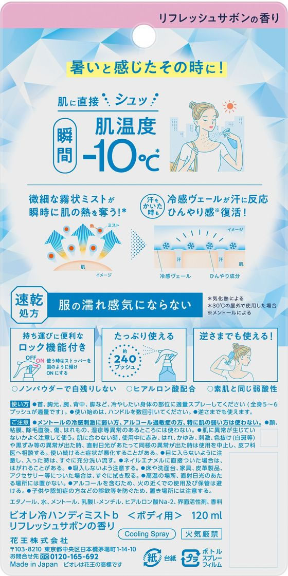 KAO ビオレ 冷ハンディミスト リフレッシュサボンの香り 120ml 1個(ご注文単位1個)【直送品】