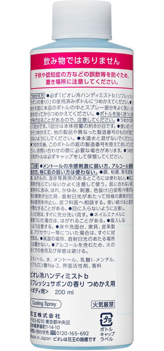 KAO ビオレ 冷ハンディミスト リフレッシュサボンの香り 詰替 200ml 1個(ご注文単位1個)【直送品】