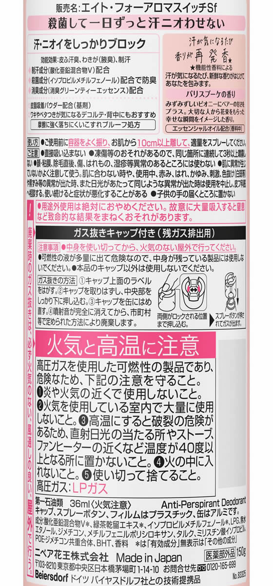 KAO 8x4 アロマスイッチ スプレー パリスブーケの香り 150g 1本(ご注文単位1本)【直送品】
