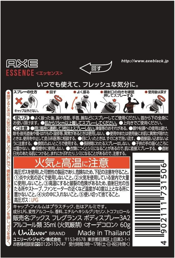 ユニリーバ AXEフレグランス ボディスプレー ESSENCE 60g 1個(ご注文単位1個)【直送品】