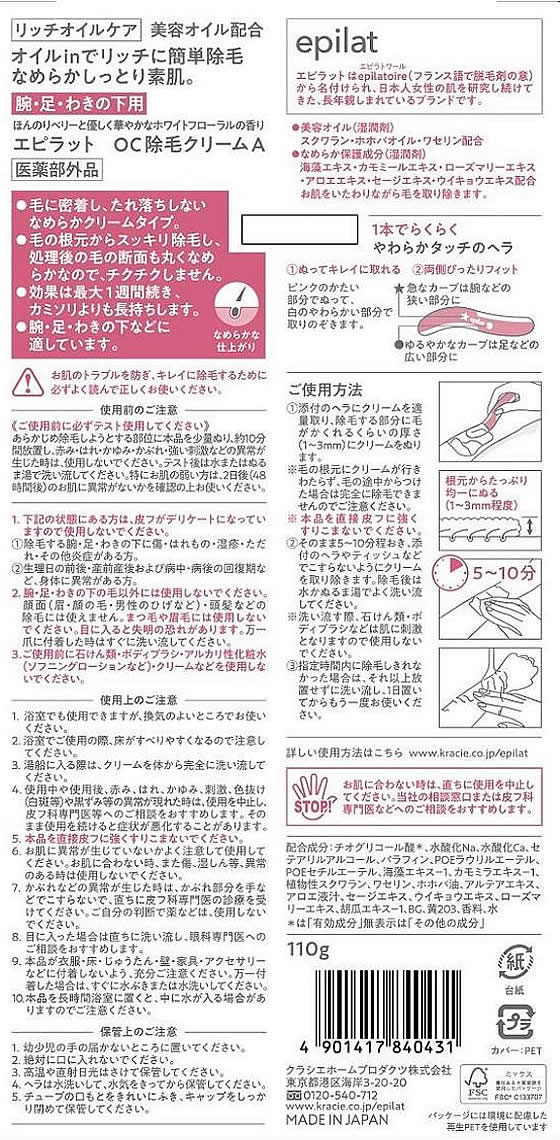 クラシエ エピラット 除毛クリーム リッチオイルケア 110g 1個(ご注文単位1個)【直送品】