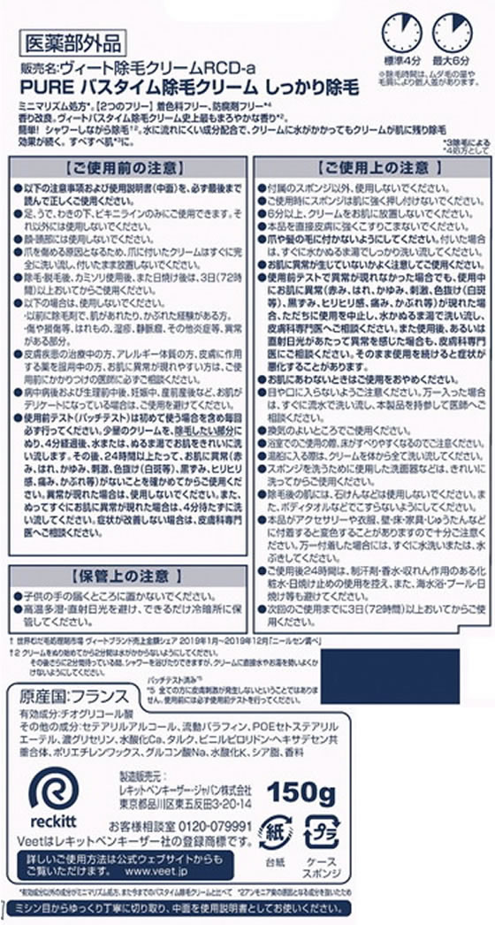 レキットベンキーザー ヴィート除毛クリームしっかり除毛150g 1個(ご注文単位1個)【直送品】