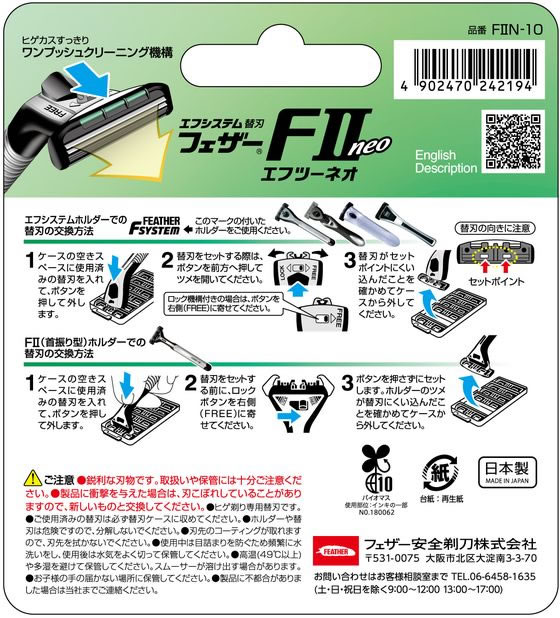 フェザー安全剃刀 FIIネオ 替刃 10コ入 1パック(ご注文単位1パック)【直送品】