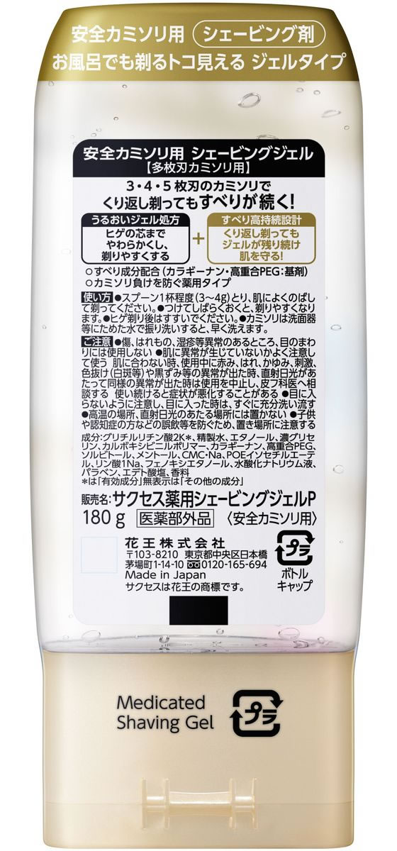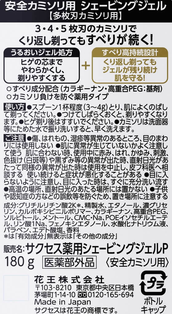 KAO サクセス薬用シェービングジェル 多枚刃カミソリ用 180g 1本(ご注文単位1本)【直送品】