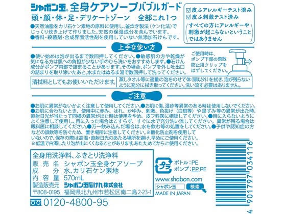 シャボン玉販売 全身ケアソープバブルガード 本体 570ml 1本(ご注文単位1本)【直送品】