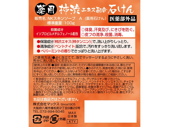 マックス 薬用 柿渋エキス配合 石けん 100g 1個(ご注文単位1個)【直送品】