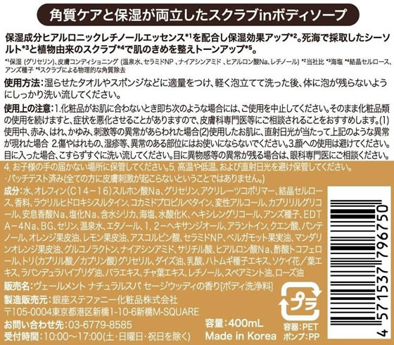 銀座ステファニー ヴェールメント ナチュラルスパ セージウッディの香り 400ml 1本(ご注文単位1本)【直送品】