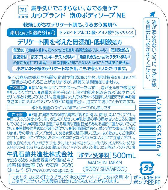牛乳石鹸 カウブランド 無添加泡のボディソープ 本体 500ml 1個(ご注文単位1個)【直送品】