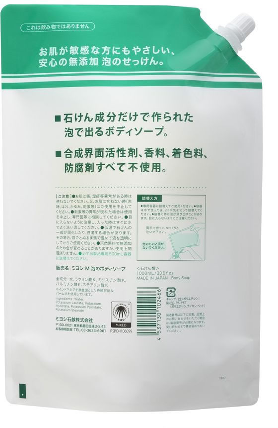 ミヨシ石鹸 無添加せっけん 泡のボディソープ スパウト 1L 1個(ご注文単位1個)【直送品】