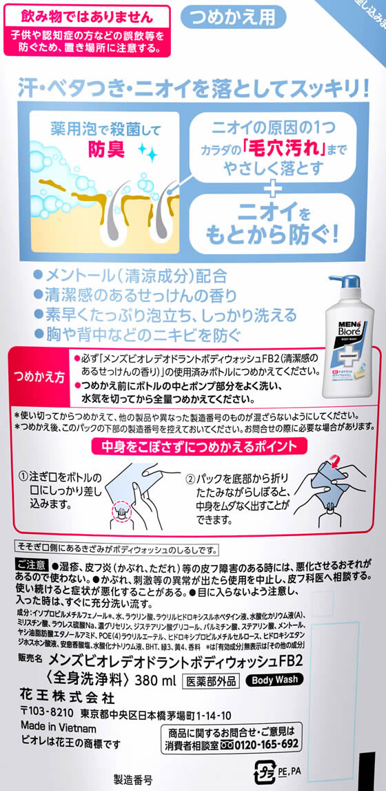 KAO メンズビオレデオドラントボディウォッシュ せっけん詰替380ml 1パック(ご注文単位1パック)【直送品】
