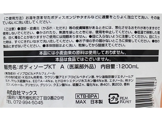 マックス 薬用 柿渋エキス配合 ボディソープ 大容量 1.2L 1個(ご注文単位1個)【直送品】