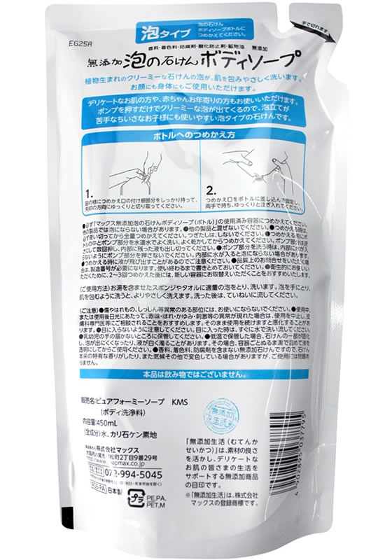 マックス 無添加 泡の石けん ボディソープ 詰替 450ml 1個(ご注文単位1個)【直送品】