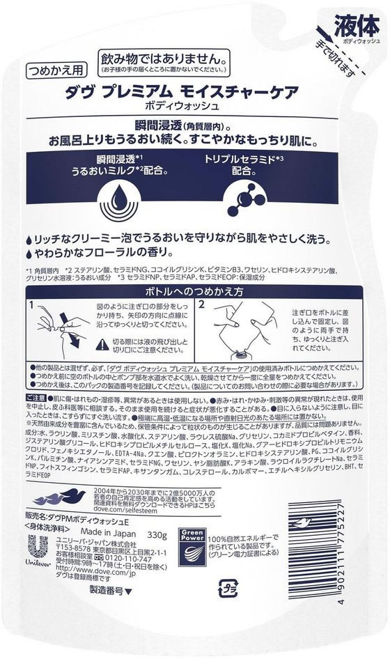 ユニリーバ ダヴ ボディウォッシュ プレミアムモイスチャー 詰替 330g 1個(ご注文単位1個)【直送品】