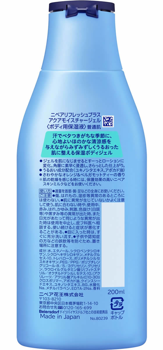 KAO ニベア リフレッシュプラス アクアモイスチャーボディジェル 200ml 1本(ご注文単位1本)【直送品】