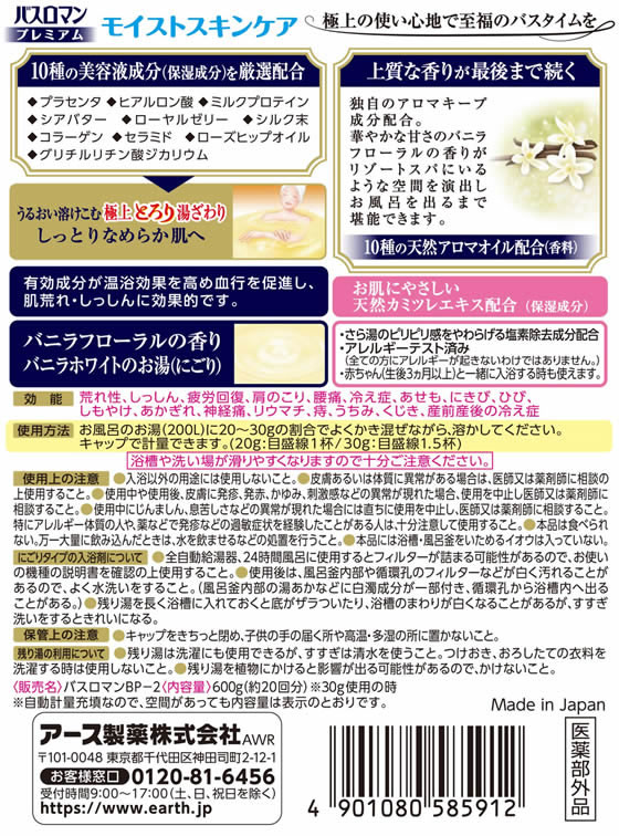 アース製薬 バスロマン プレミアム モイストスキンケア 600g 1個(ご注文単位1個)【直送品】