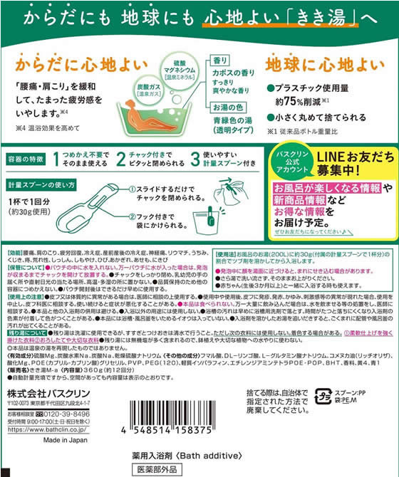 バスクリン きき湯 マグネシウム炭酸湯 カボスの香り 360g 1個(ご注文単位1個)【直送品】