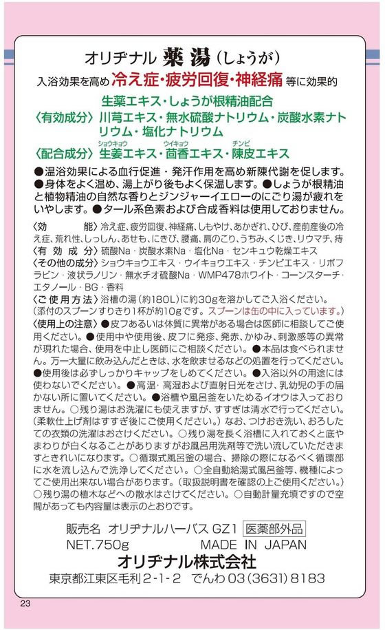 オリヂナル 薬湯しょうが 750g 1個(ご注文単位1個)【直送品】