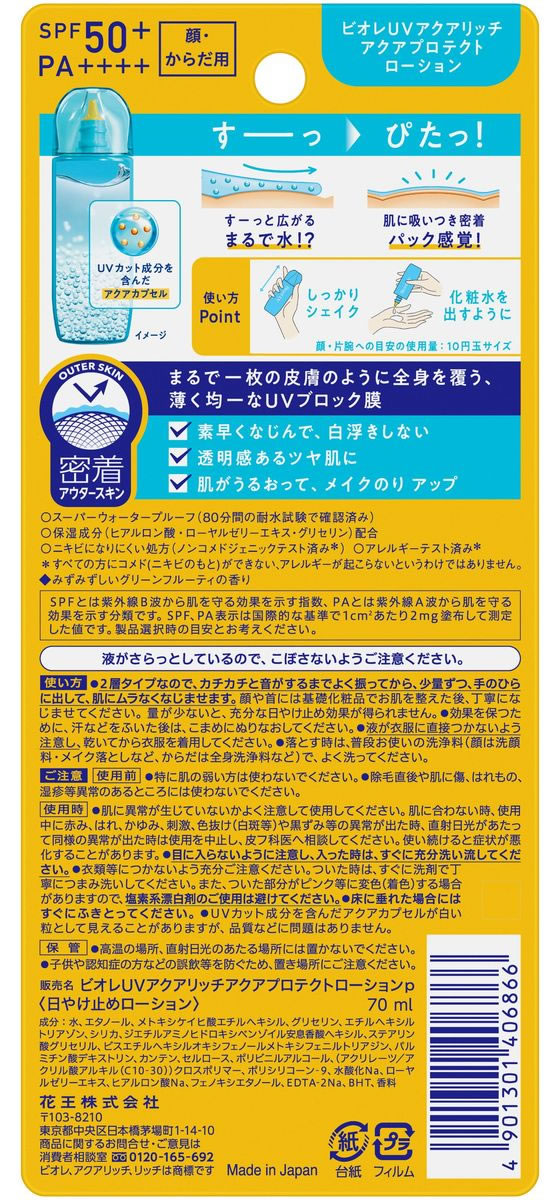 KAO ビオレUV アクアリッチ アクアプロテクトローション 70ml 1本(ご注文単位1本)【直送品】