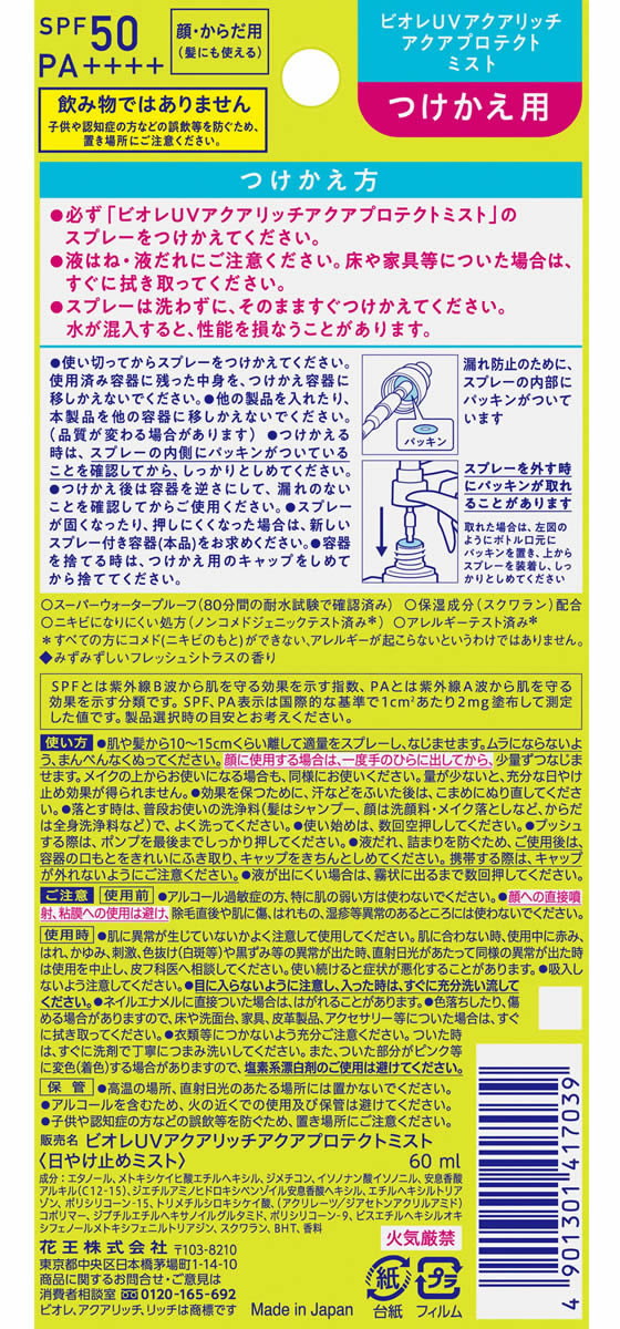 KAO ビオレUV アクアリッチ アクアプロテクトミスト つけかえ用 60ml 1個(ご注文単位1個)【直送品】