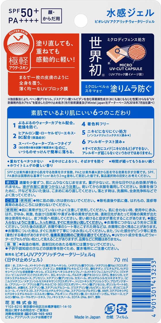 KAO ビオレ UV アクアリッチ ウォータリージェル 70ml 1個(ご注文単位1個)【直送品】