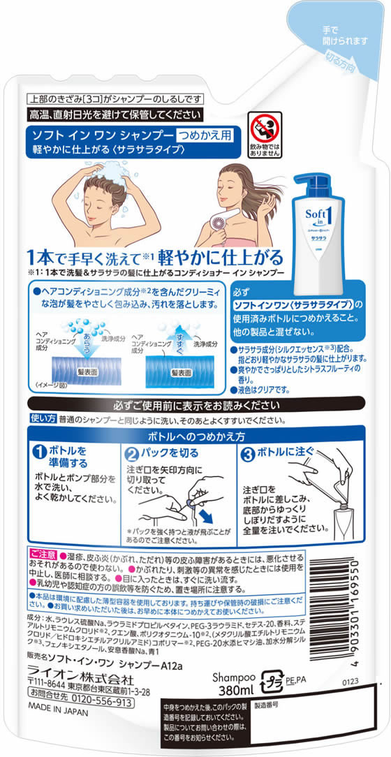 ライオン ソフトインワンシャンプー サラサラ つめかえ用 380ml 1パック(ご注文単位1パック)【直送品】