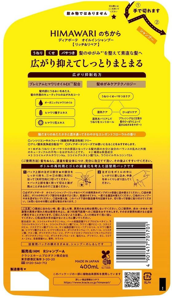 クラシエ ディアボーテ オイルインシャンプー リッチ&リペア 詰替用 400ml 1個(ご注文単位1個)【直送品】
