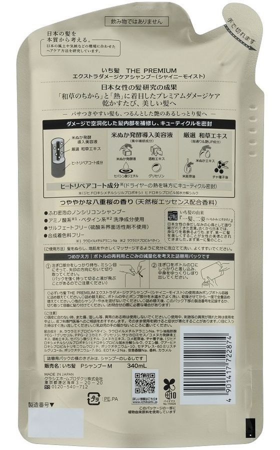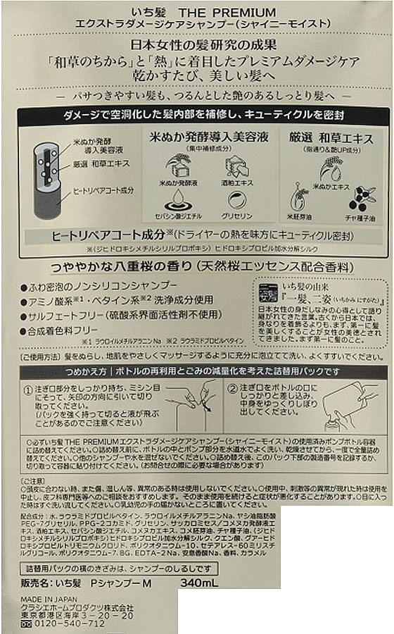 クラシエ いち髪 THEPREMIUM EXダメージケアシャンプー 替 340mL 1個(ご注文単位1個)【直送品】