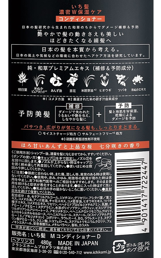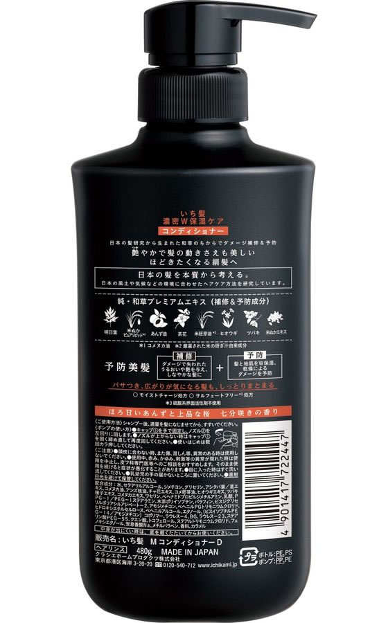 クラシエ いち髪 濃密W保湿ケア コンディショナー ポンプ 480g 1個(ご注文単位1個)【直送品】