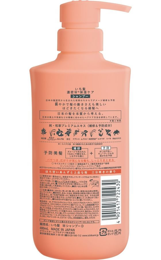 クラシエ いち髪 濃密W保湿ケア シャンプー ポンプ 480mL 1個(ご注文単位1個)【直送品】