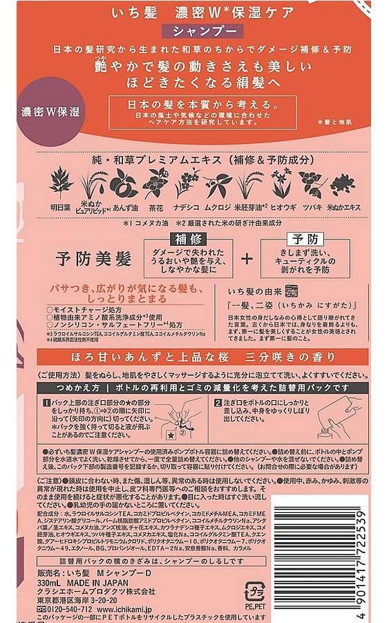 クラシエ いち髪 濃密W保湿ケア シャンプー 詰替用 330mL 1個(ご注文単位1個)【直送品】