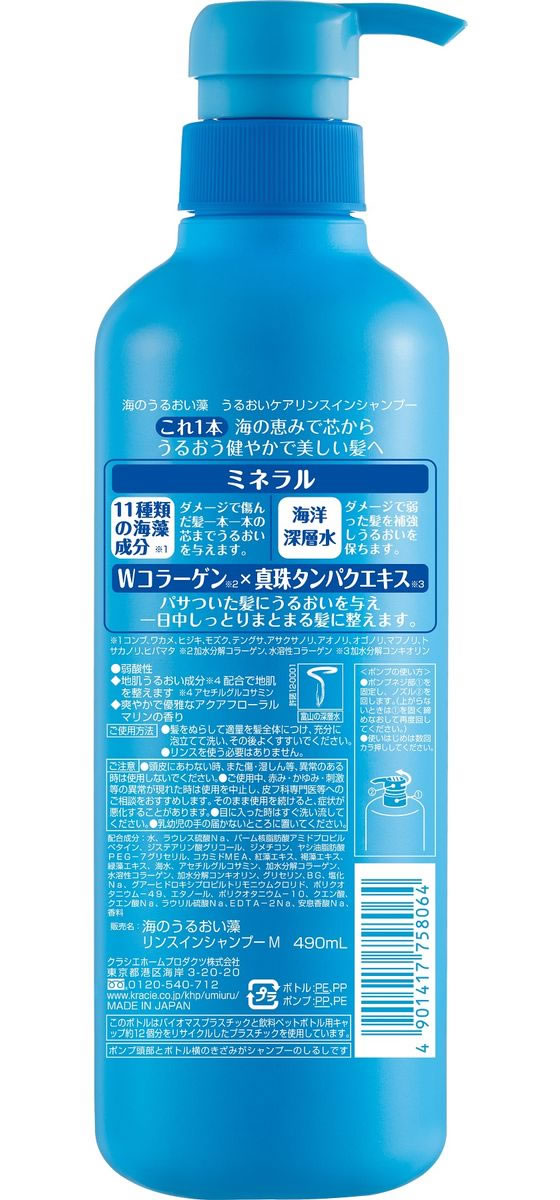 クラシエ 海のうるおい藻 うるおいケアリンスインシャンプー本体490ml 1本(ご注文単位1本)【直送品】